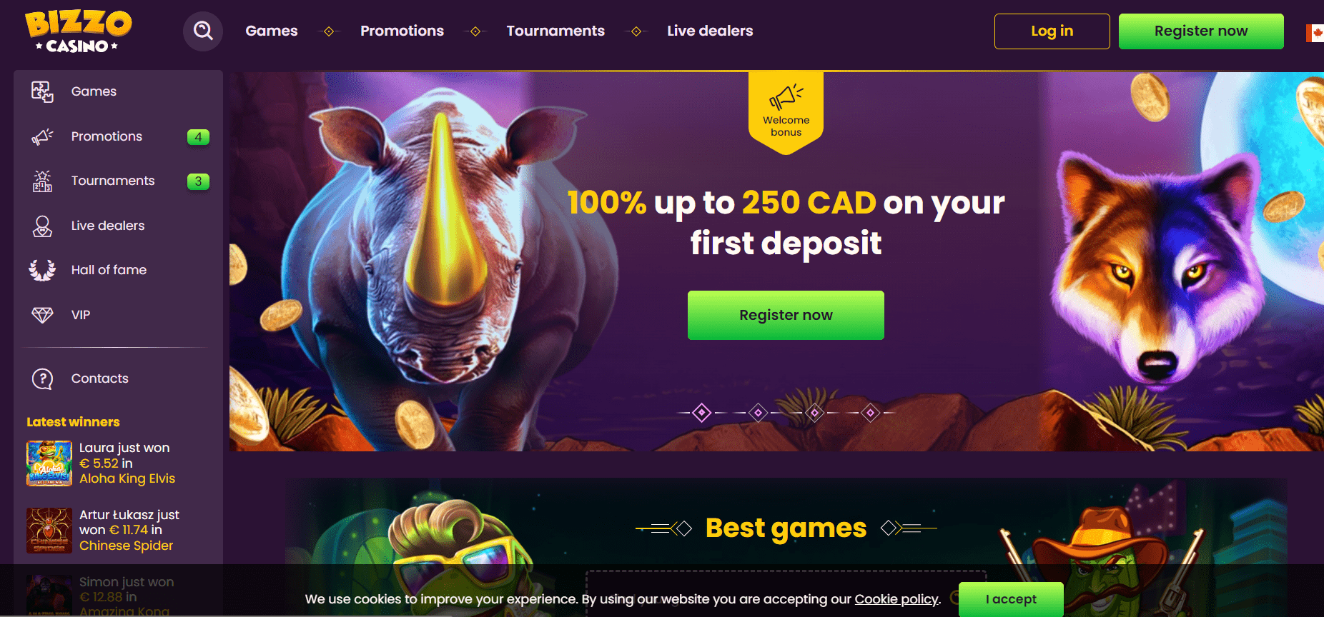 Viele der besten Namen der Branche sind im Bizzo Casino vertreten, darunter Pragmatic Play, Nolimit City, Playson, Thunderkick, Betsoft, Wazdan und Yggdrasil Gaming. Es gibt hier sogar ein Live-Casino und alle haben ihre eigenen Versionen von Video-Slots und Tischspielen. Die Website ist derzeit auf Englisch und Deutsch verfügbar und auf den meisten Mobil- und Tablet-Geräten zugänglich. Die Regierung von Curacao gewährt Bizzo Casino außerdem eine Volllizenz und strenge Vorschriften.