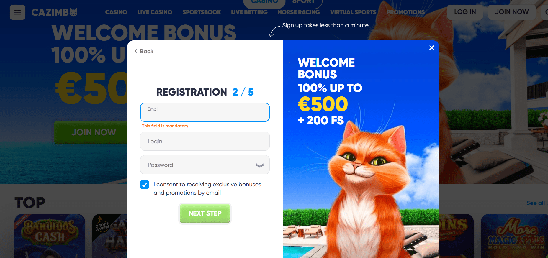 Cazimbo ist das Katzenmiau-Casino, wenn Sie Katzen und Glücksspiel lieben. Profitieren Sie von Cashback, wöchentlichen Aufladungen und einem großzügigen Willkommenspaket. Durch das Erledigen von Aufgaben können Sie Treuemünzen verdienen, die Sie im Cazimbo-Shop gegen Gratiswetten, Spins und Boni eintauschen können.