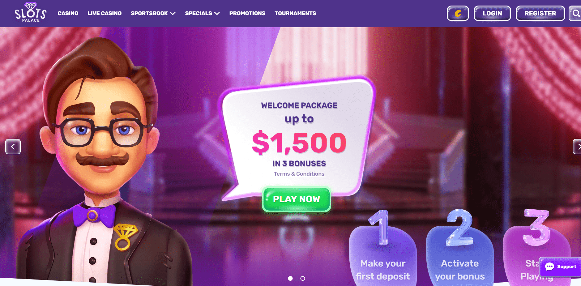 Spieler aus der ganzen Welt können die Vielfalt der Spiele im SlotsPalace Casino, einem Online-Casino, genießen. Spiele wie Video-Slots, Tischspiele und Live-Casino-Spiele sind verfügbar. Den Spielern steht eine Vielzahl von Softwareanbietern zur Verfügung, darunter Play'n GO, NetEnt, Microgaming, Pragmatic Play, Playson und Big Time Gaming. Die Website kann über einen Webbrowser oder von unterwegs aufgerufen werden und ist in Englisch, Deutsch und einer Reihe weiterer Sprachen verfügbar.